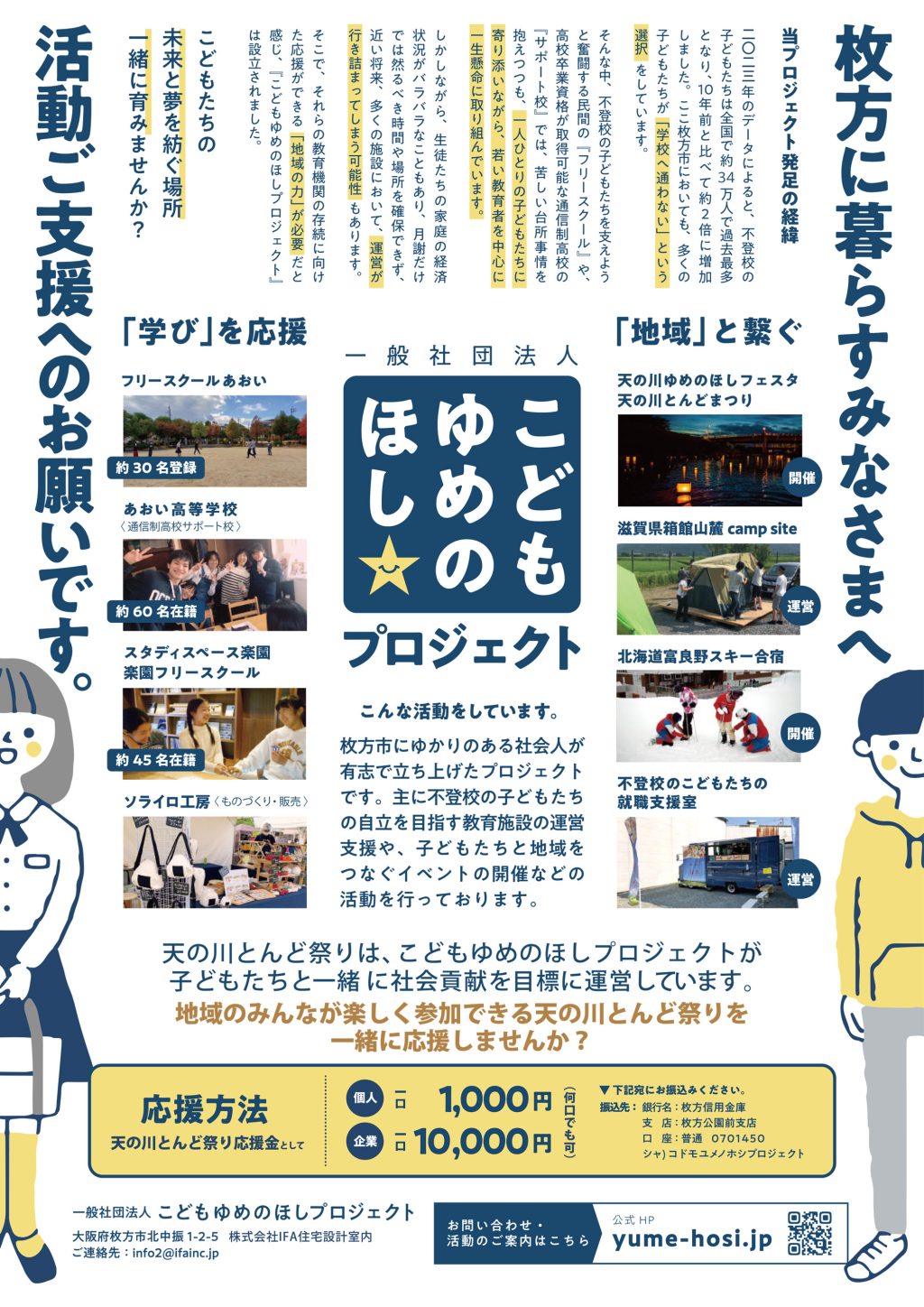 主催するこどもゆめのほしプロジェクトさんは、枚方のフリースクールや通信制高校を支え、学校に行きづらくなった子ども達が笑顔になる取り組みをされています。