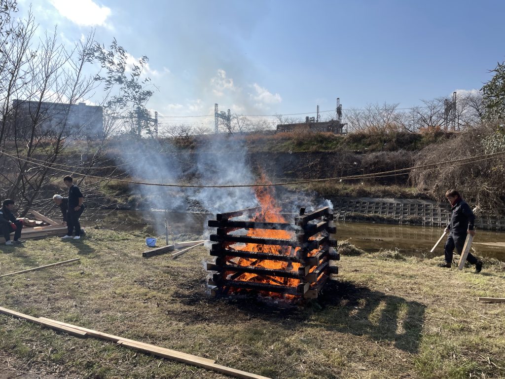 とんどの木組みは、前日にスタッフさん総出で組み上げるのだとか!
