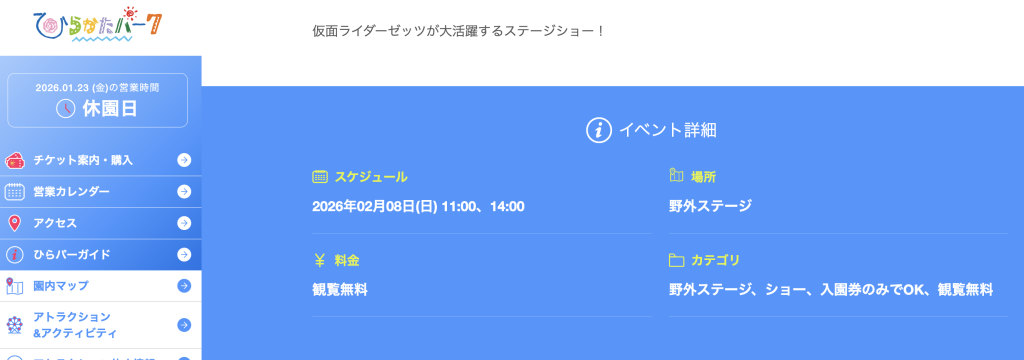仮面ライダーゼッツが大活躍するステージショーがひらかたパークで開催されるとのこと。