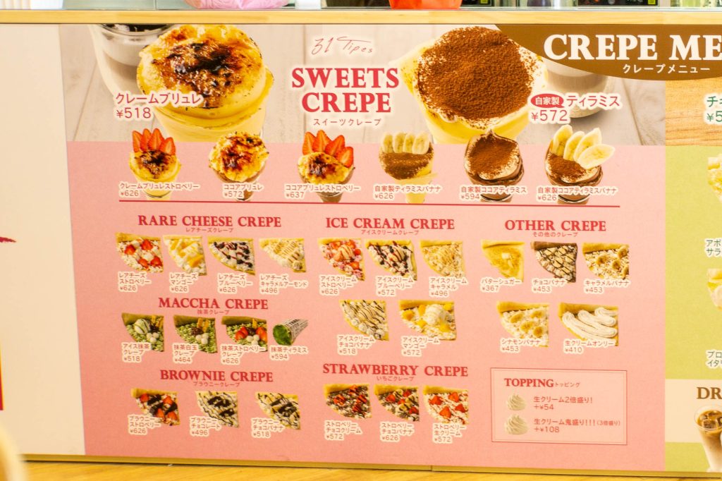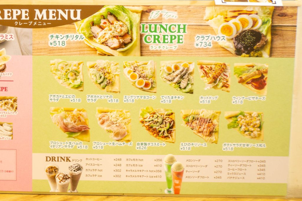 ランチクレープにスイーツクレープと豊富なメニュー。