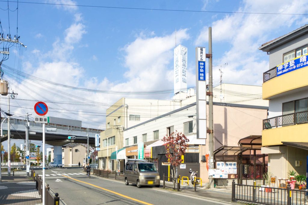 こっちにいくと交野市駅の方へ。すぐ横には万代などがあります