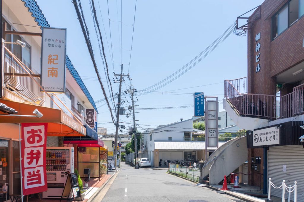 こっちに行き右に曲がると府道18号線ぞいへ。近くにはくずはローズ幼稚園などがあります。