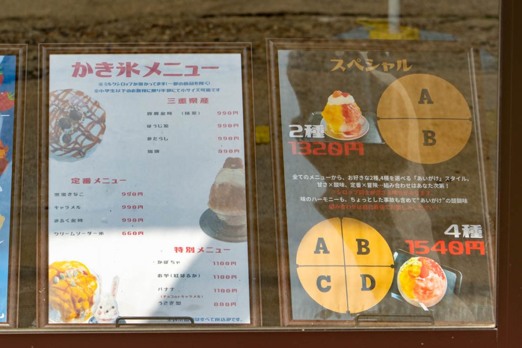 メニューが見えるように置いてありました。みたらしとかクリームソーダとか気になる味がいっぱい。しかもハーフ&ハーフみたいなこともできるんですね〜!