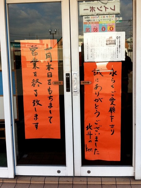 一月末日をもちまして営業を終了致します永らくご愛顧下さり誠にありがとうございました北斗のken