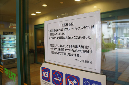 香里園駅のフレストに入ってるスターバックスコーヒーが閉店してました。