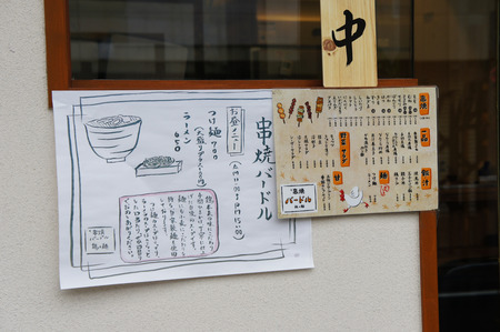ちょっと見えにくいと思いますが「串焼バードル」と書かれた下には「鶏×麺」とあります。シンプルな外観ですが店名の文字の感じとか、「串焼」の横にちょこんと鶏の足あとみたいなマークもあって親しみやすそうな雰囲気が出てます。
