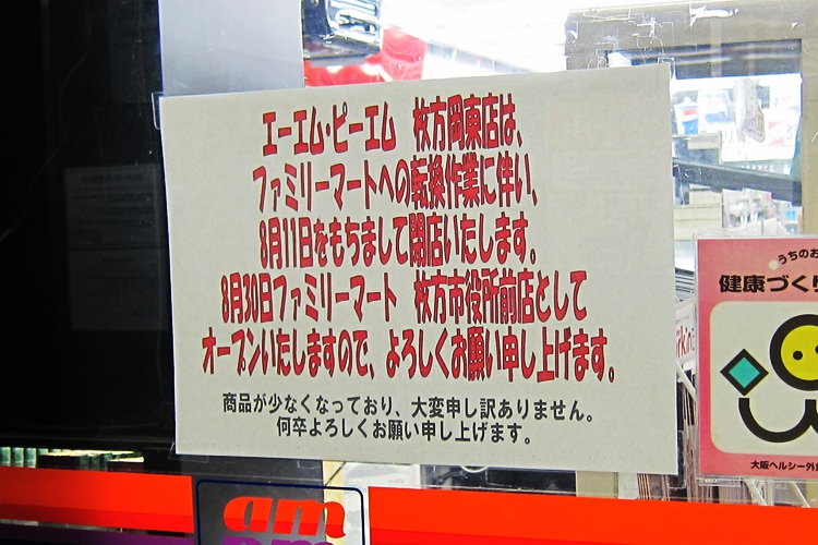 枚方市駅前のam/pmが閉店するそうです。