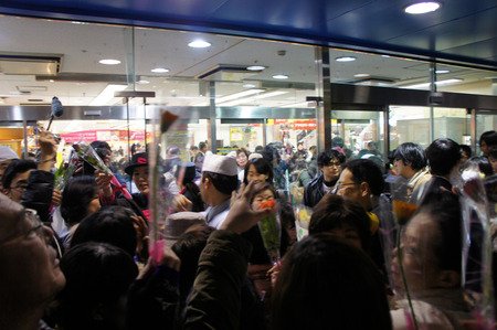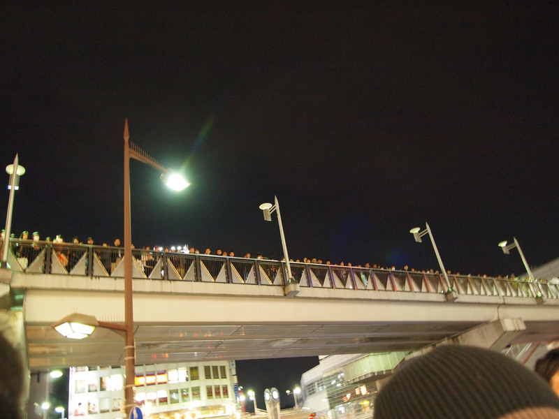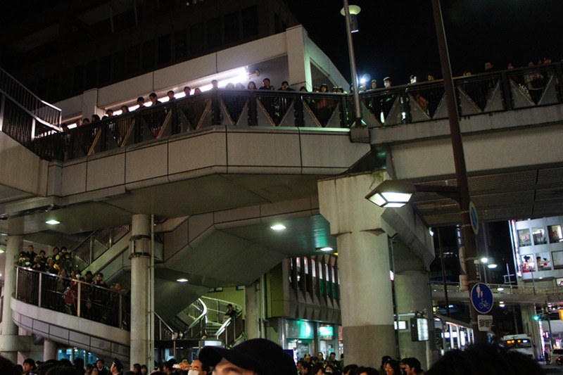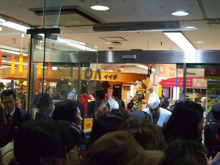 そして閉店時刻の19:00に。歩道橋の上まで人が集まっています。