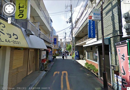 すぐそこの交差点を左に曲がると枚方市民会館前に出ます。写真右は駐車場になってますがこの場所をGoogleストリートビューで見ると…