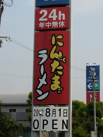 小さい文字で書いてますが「にんたま」というのはニンニクと玉子のことだそうです。8月1日オープンで、24時間営業です。