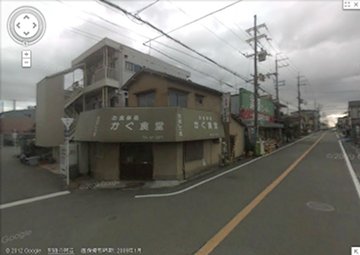 この場所をGoogleストリートビューで見ると「かぐ食堂」という食堂があるのがわかります。