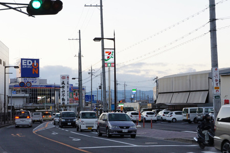 こっちに行くとすぐに国道1号線のエディオン(元ミドリ)のある交差点。