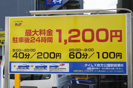 名前は「タイムズ枚方公園駅前第6」。前もタイムズでしたが「第3」だったので復活ではなく新しい駐車場ができたという扱いであるという細かい観察。