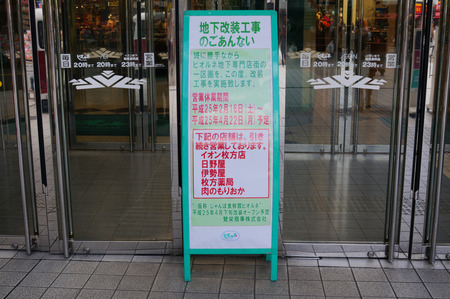 イオンや日野屋、伊勢屋、枚方薬局、肉のもりおかなどは今も営業してますが、フロアの半分ぐらいの飲食店などがあったスペースが完全に囲われて工事中です。