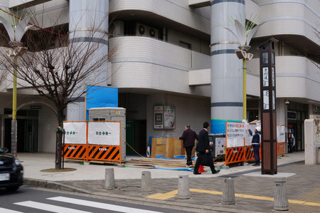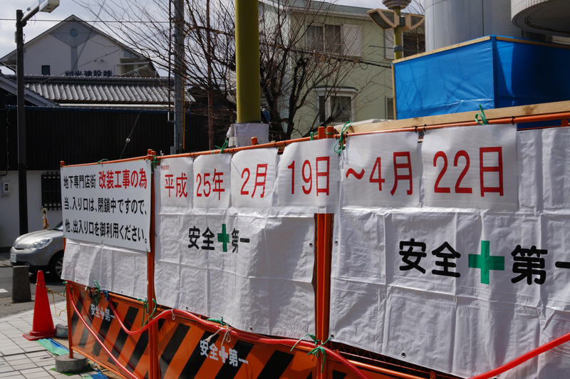裏側に回ると、裏から地下1階へのエスカレーターのところも工事してます。
