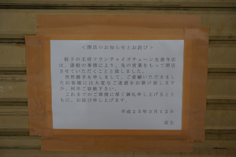光善寺駅前の「餃子の王将」が閉店してます。
