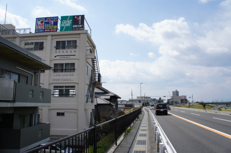 旧1号線側から見ると写真左の建物です。ひらつーオフィスもここの2階にあります。Rio y solは3階。