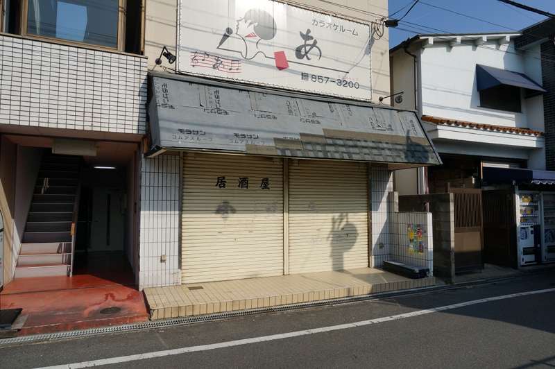移転先がどこなのか、ナカガワらへんをウロウロしてみてもわからなかったんですが、以前「居酒屋 小豆島」があったところのシャッターが「居酒屋」と文字だけ残してあったのでここかなぁという気はしました。間違ってたらすいません。