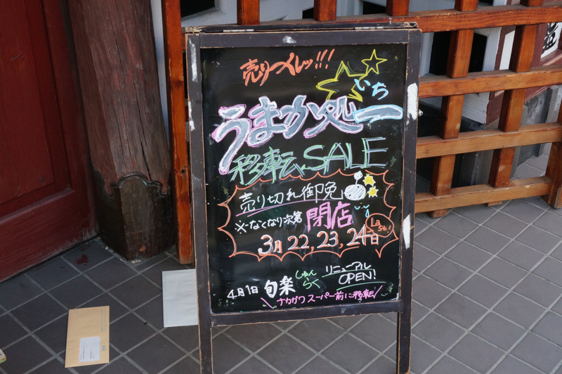 3月24日で閉店して、「旬楽(しゅんらく)」と名前を変えて同じ通りのスーパーナカガワ前に移転するそうです。4月1日オープン。