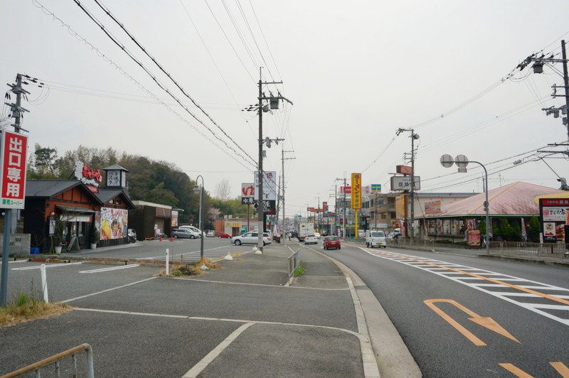 こっちに行くとすぐに寝屋川市に入ります。向かいには「まぐろ家まる」や「ステーキけん」「麒麟閣」「来来亭」など。