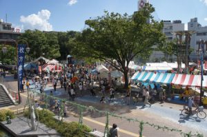 あっちに行くと枚方公園駅。隣にはたこ焼「三代目たくちゃん」の本店があります。