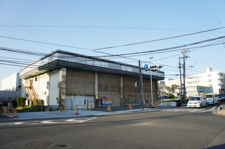 この場所には以前こんな建物があって、2012年9月に解体されました。パチンコとして建設されたもののオープンしなかった建物だったそうです。詳しくは解体のときの記事で。