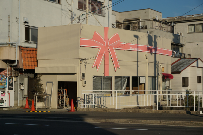 Merci bakeryをつくってるのは右側の建物。「バイクショップ イマダ」と書かれてます。左の建物は去年川原町にできた「白うさぎ」というお店があったところです。
