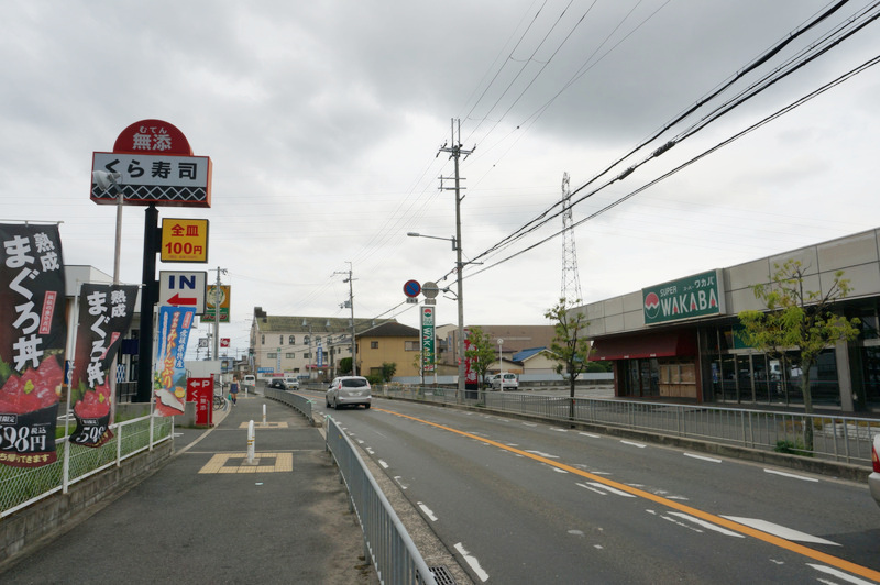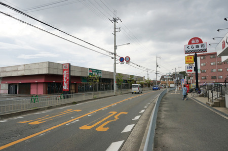 こっちに行くとイエローハットとかTSUTAYA長尾店などがあって長尾駅のほうへ。向かいにはくら寿司とジャパンがあります。