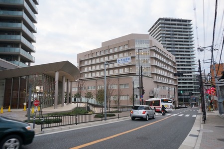 斜め向かいには関西医大香里病院。バスが曲がってる先がバスロータリーです。