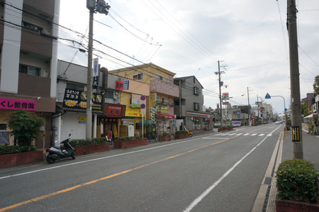 あっちに行くとすぐ右手に関西外大の正門。すぐそこにセブンイレブンが見えてます。