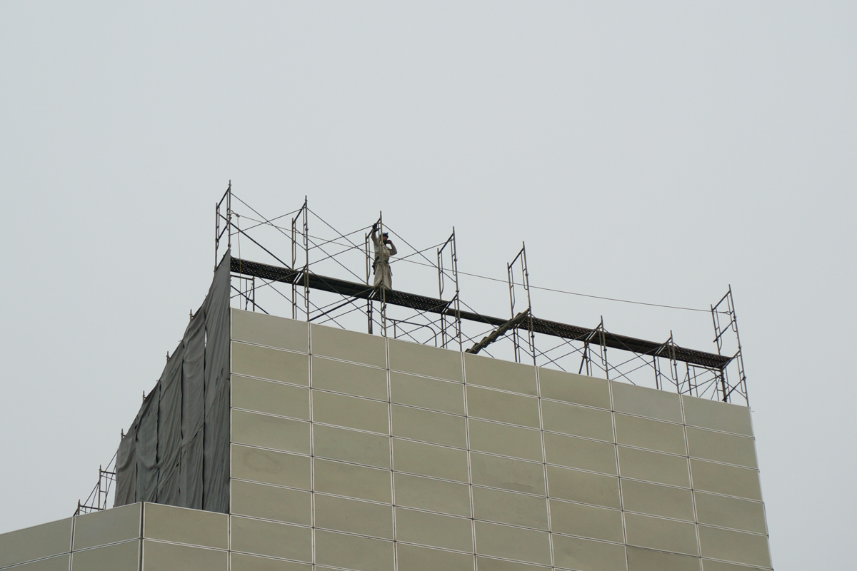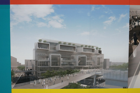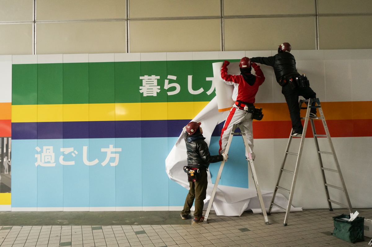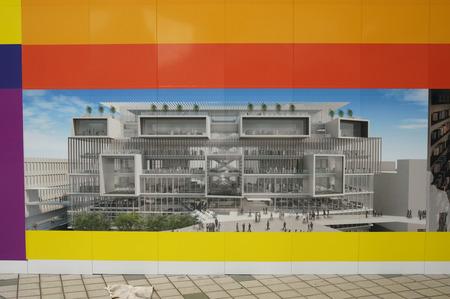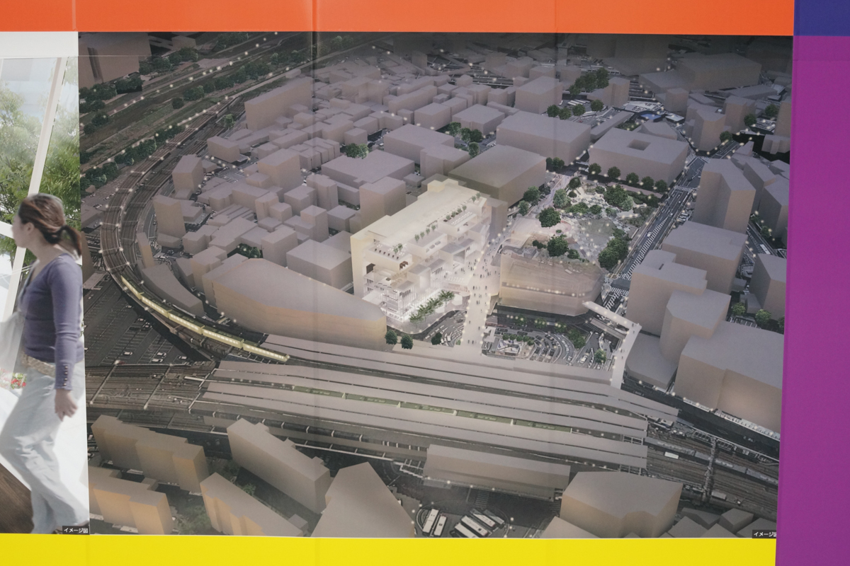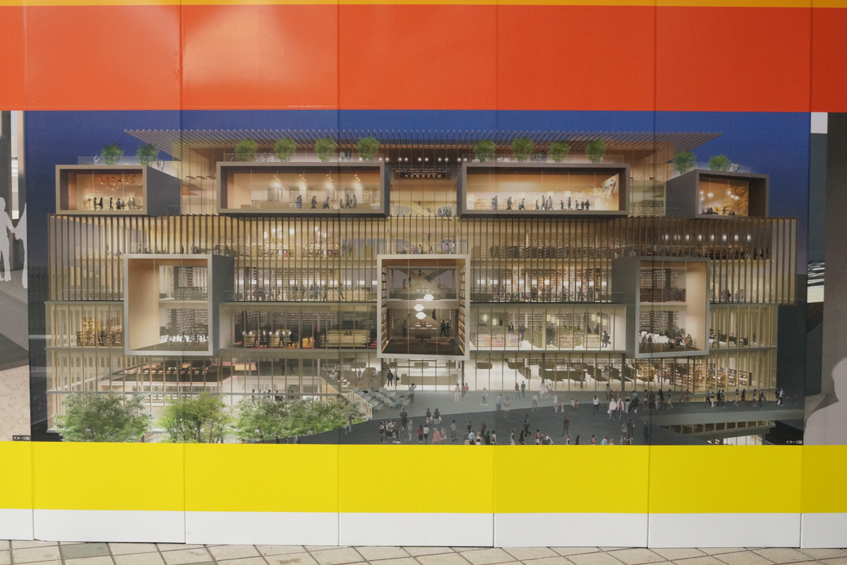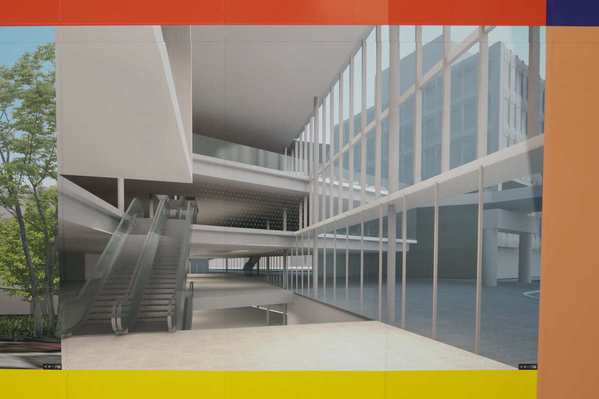旧近鉄百貨店の建物が解体工事のために覆われてますが、そこに新しくできる商業施設の完成イメージがたくさん貼りだされました。