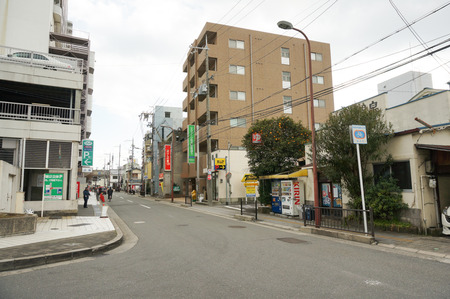 あっちに行くとビオルネの裏の入り口があって左手に岡本町公園、さらに行くと京阪電車の高架があります。