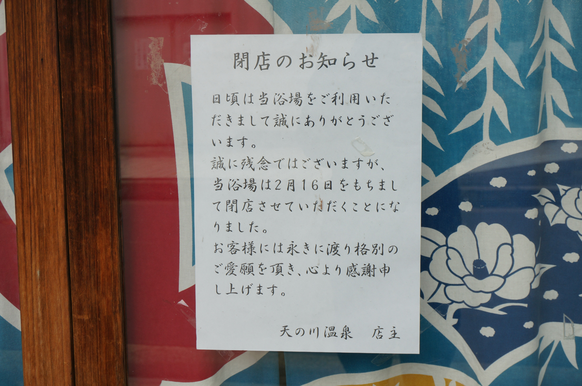 ビオルネ裏にある「天の川温泉」が閉店してます。