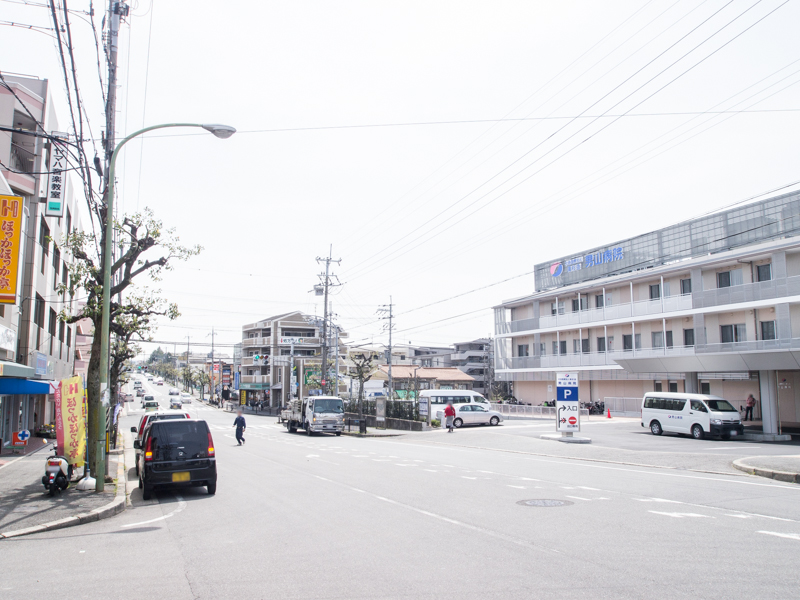 ほっかほっか亭が向かいにあります。この道をまっすぐにいくと国道1号の八幡洞ヶ峠交差点を越え、松井山手方面へ。