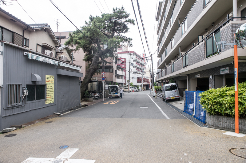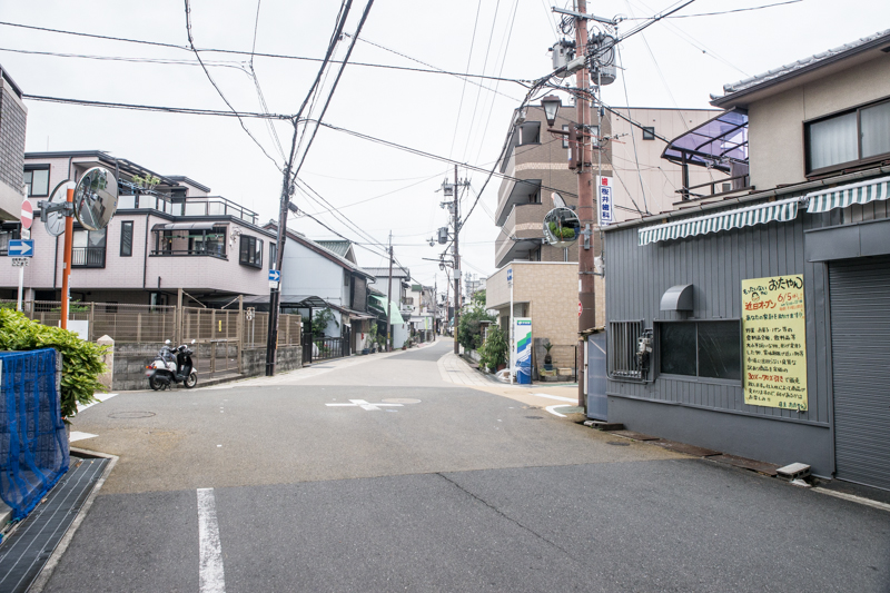 この道は五六市を開催している道で、まっすぐいくとビオルネの裏側に出ます。写真の交差点を左に曲がるとひらつーオフィスや色んなお店のある枚方鍵屋別館などがあります。