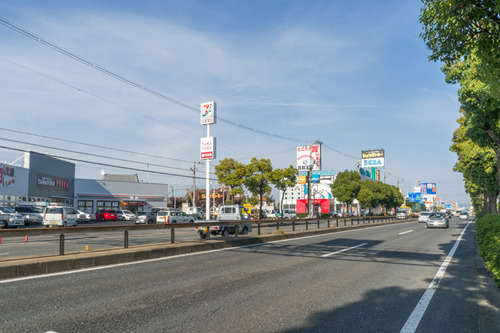 国道1号線沿い堂山につくっていた「たまゆら 枚方堂山店」と「セブンイレブン 枚方堂山3丁目店」がほぼ完成しています。