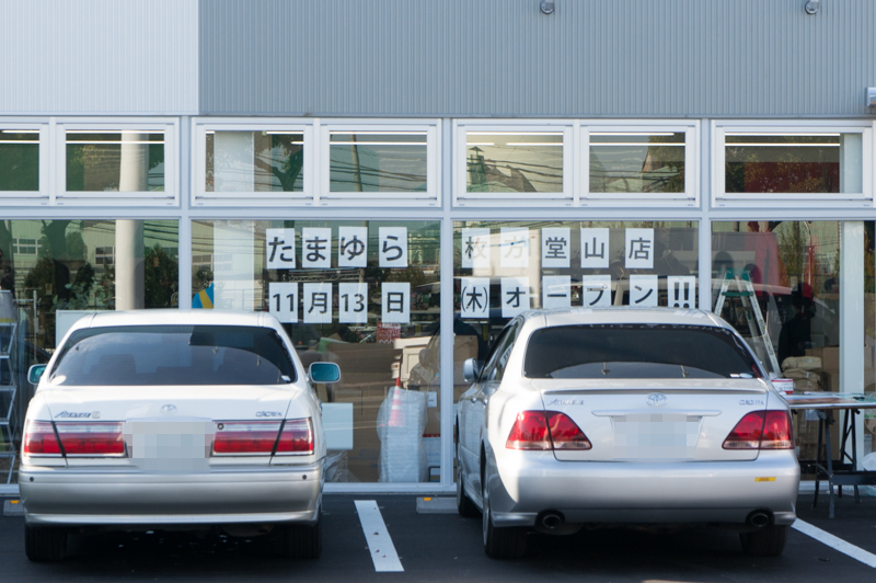 安定のセブンイレブンに対して、たまゆらは枚方市内にある他店舗とは違った感じのデザインの店舗ですね。店舗名もローマ字になっていて、どことなく落ち着いた印象を感じさせます。