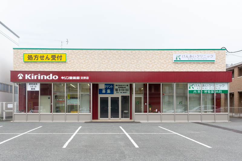 「キリン堂薬局」や「けんあいクリニック」なども入る建物の一部分。