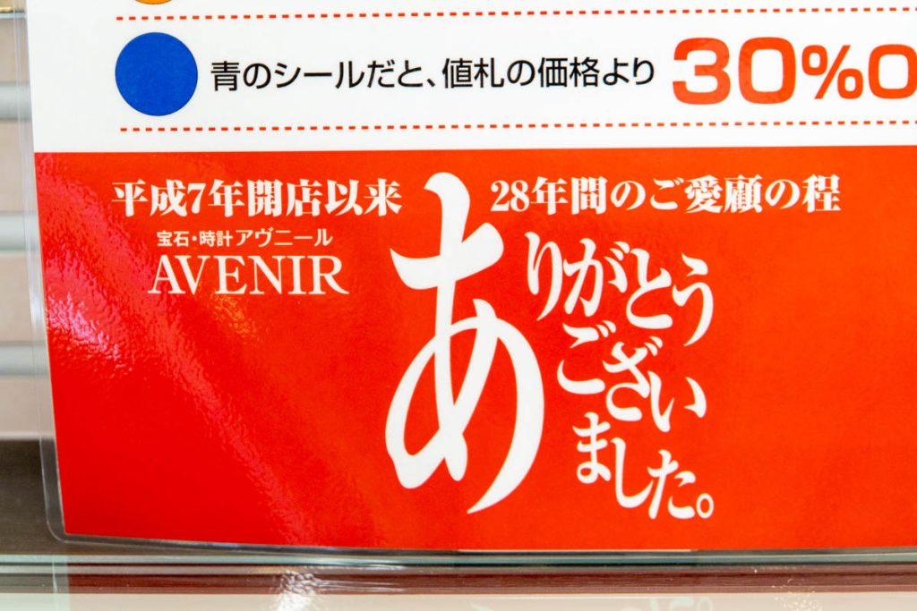 南楠葉の宝石・時計店「アヴニール」が閉店するようです。