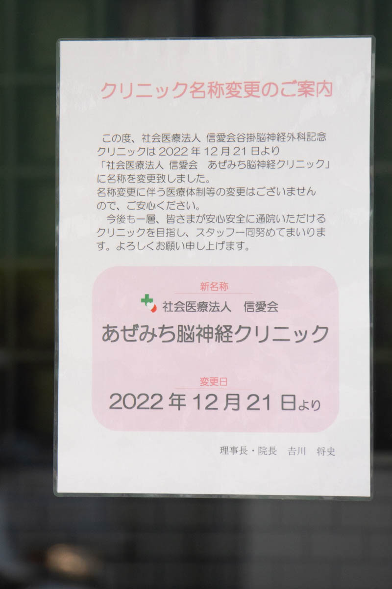 上記によると12月21日より「あぜみち脳神経クリニック」へ名称を変更したとのこと。