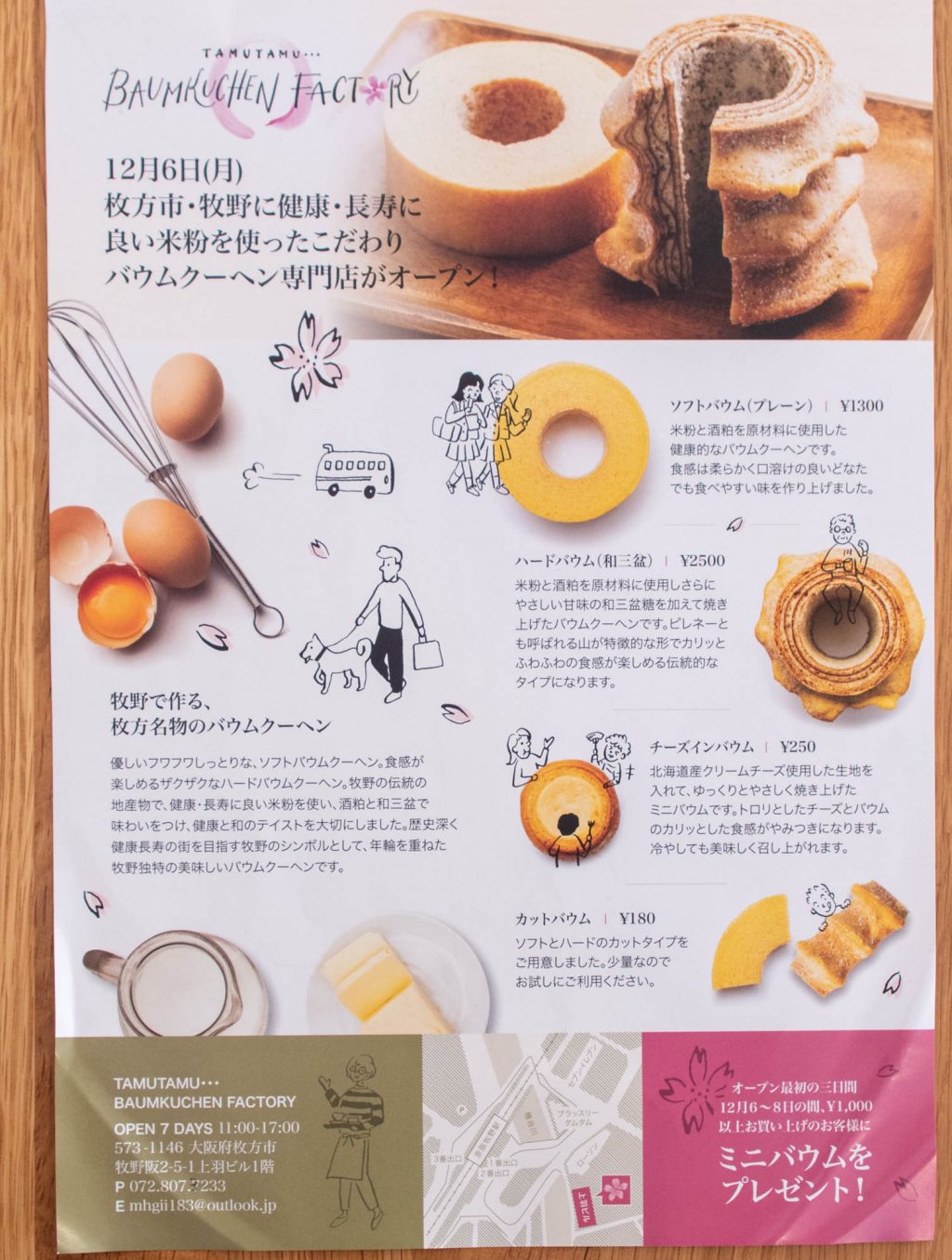 タムタムバウムクーヘンファクトリー 営業時間 11:00-17:00 定休日 なし 住所 大阪府枚方市牧野阪2-5-1 上羽ビル1 電話番号 072-807-3233 関連リンク Instagram ※店舗情報、記事内に掲載している商品、価格等は取材時点のものです。