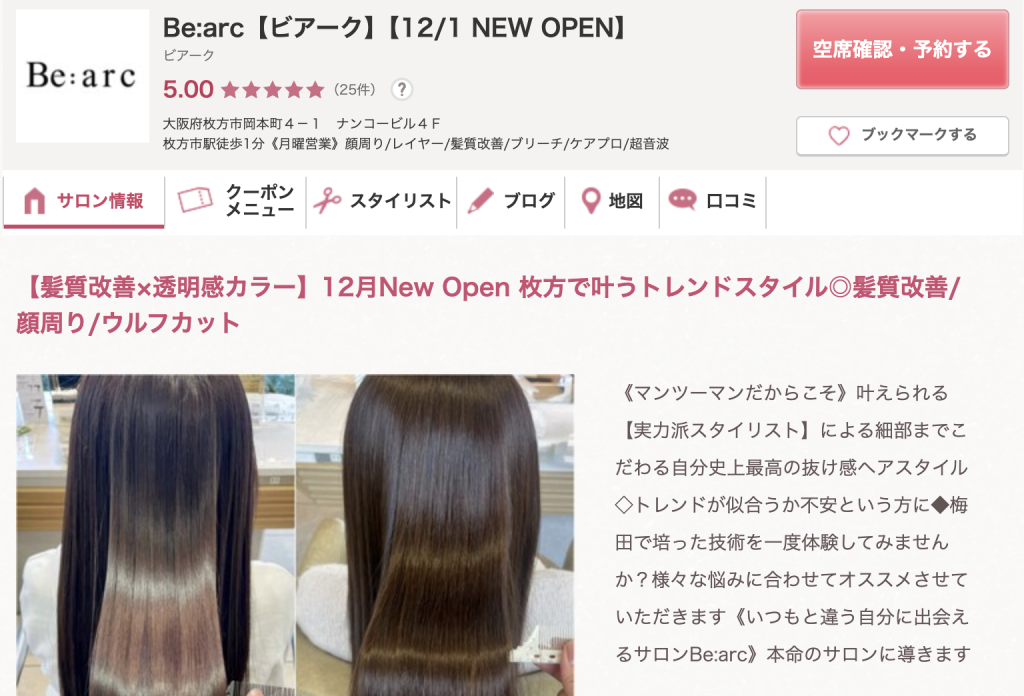 HOT PEPPER Beautyの店舗ページを見てみると、オープン日は12月1日。