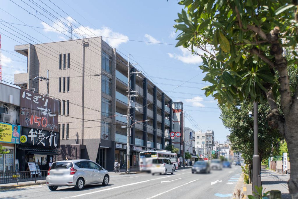 反対方向へ行くと府道18号線と愛称市道「くずはアベニュー」が分かれる交差点「楠葉中央」がすぐそばにあります。