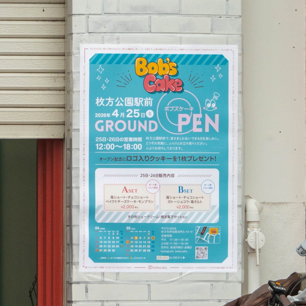 枚方公園駅前に「Bob’s Cake(ボブズケーキ)」というケーキ屋さんができるようです。