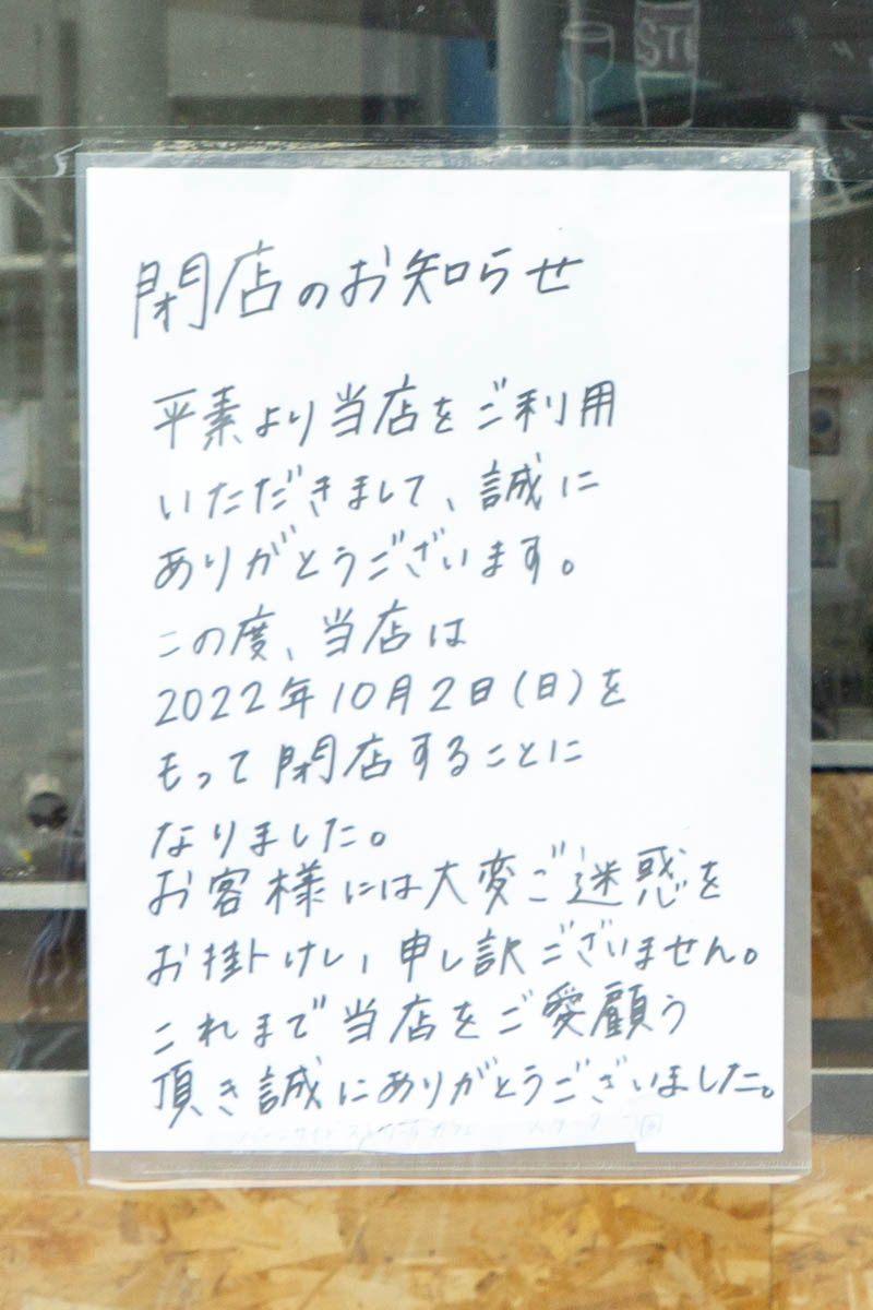 上記によると10月2日をもって閉店したとのことでした。