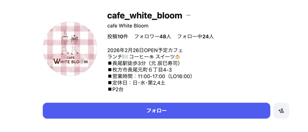 長尾駅近くに「cafe White Bloom」ができるようです。