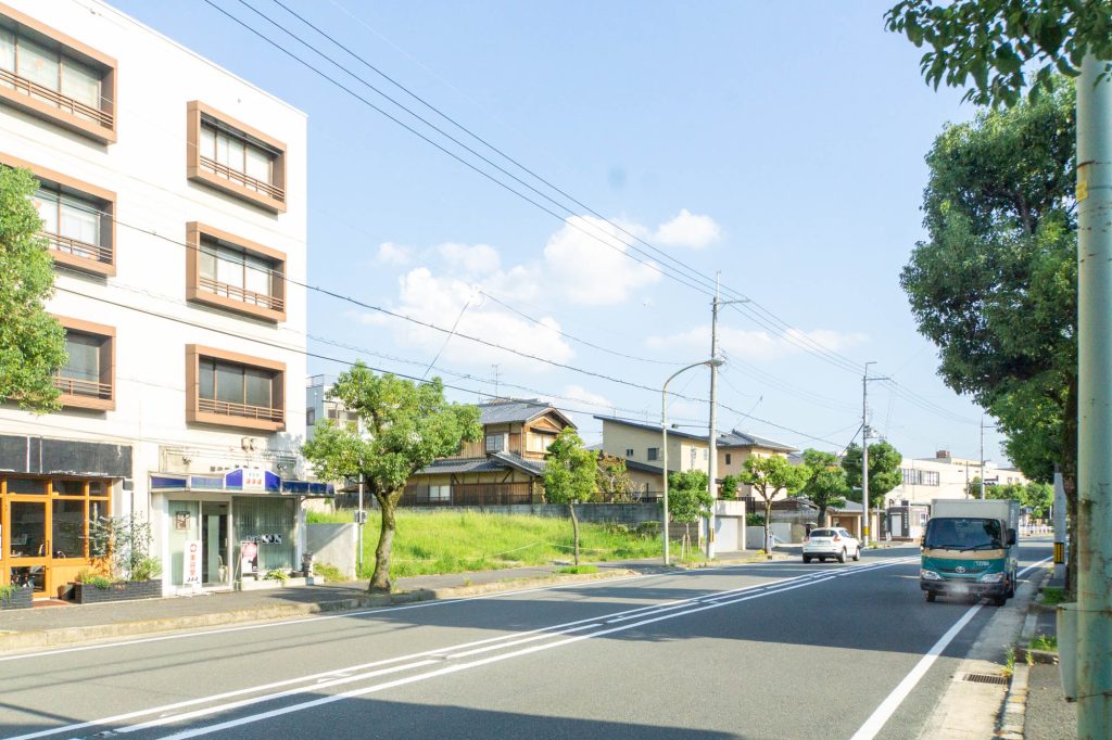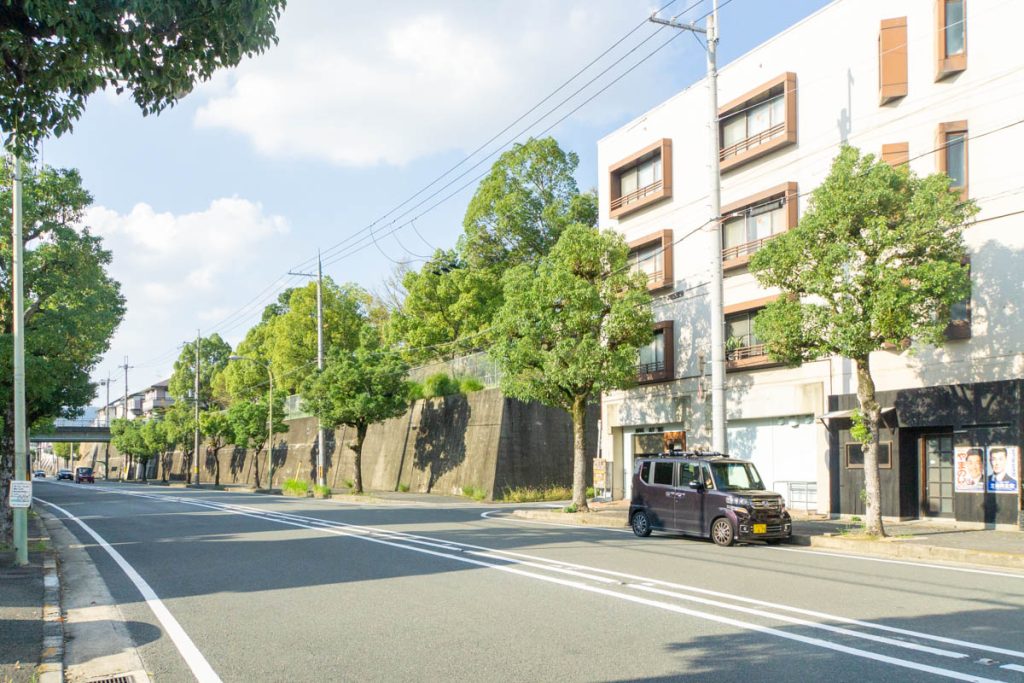 反対方向へ行くとくずは男山スイミングスクールや男山病院が。