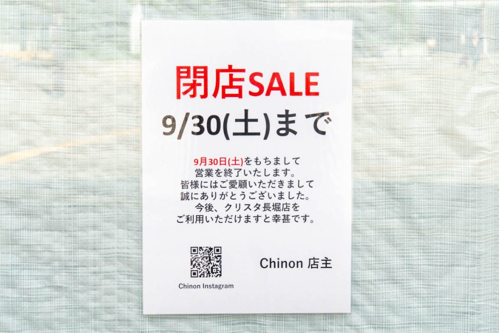 くずはモールの「Chinon」が閉店しています。