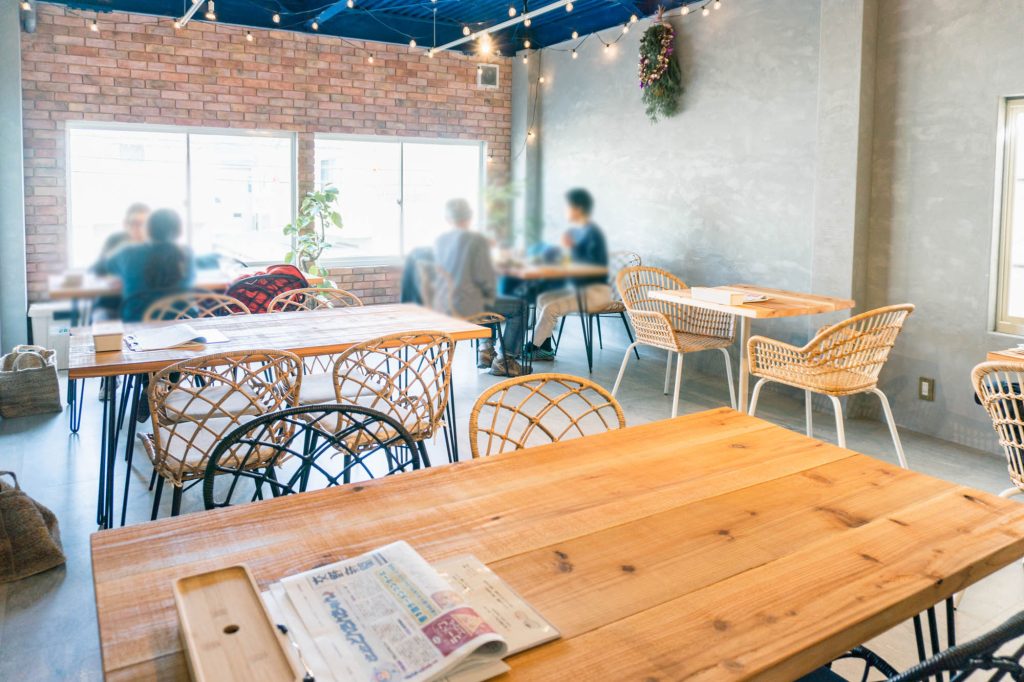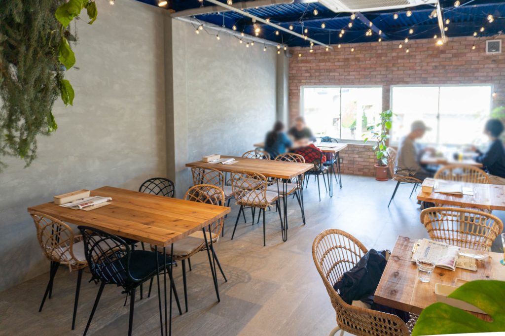 2階建てになっておりまして、カフェは主に2階。1階でもビールなどを楽しむことができますよ!