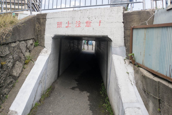 お店の真横には頭上注意でお馴染みの国道を横断する狭小トンネルが。